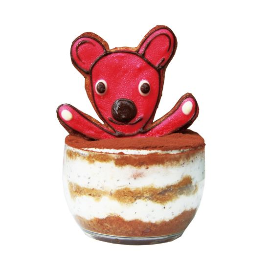 ルクアのキャラクター「ルクアーノ」をかたどった、フランボワーズムースの生チョコタルト。