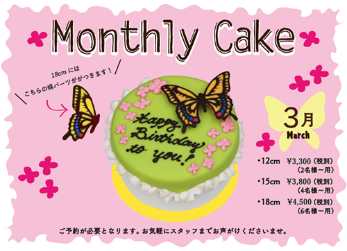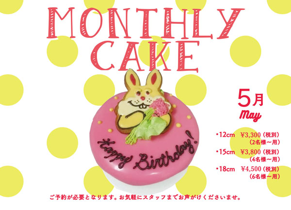 4月13日(水)~15日(金)の3日間はご予約が集中しており、誠に勝手ながらオーダーケーキに加え、マンスリーケーキ、お二人様用ケーキのご予約を締め切らせて頂きます。